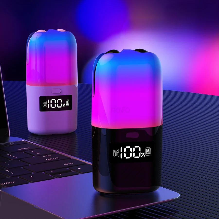 â A caixa de carregamento contĂ©m uma coluna integrada e visor LED com indicação da bateria;