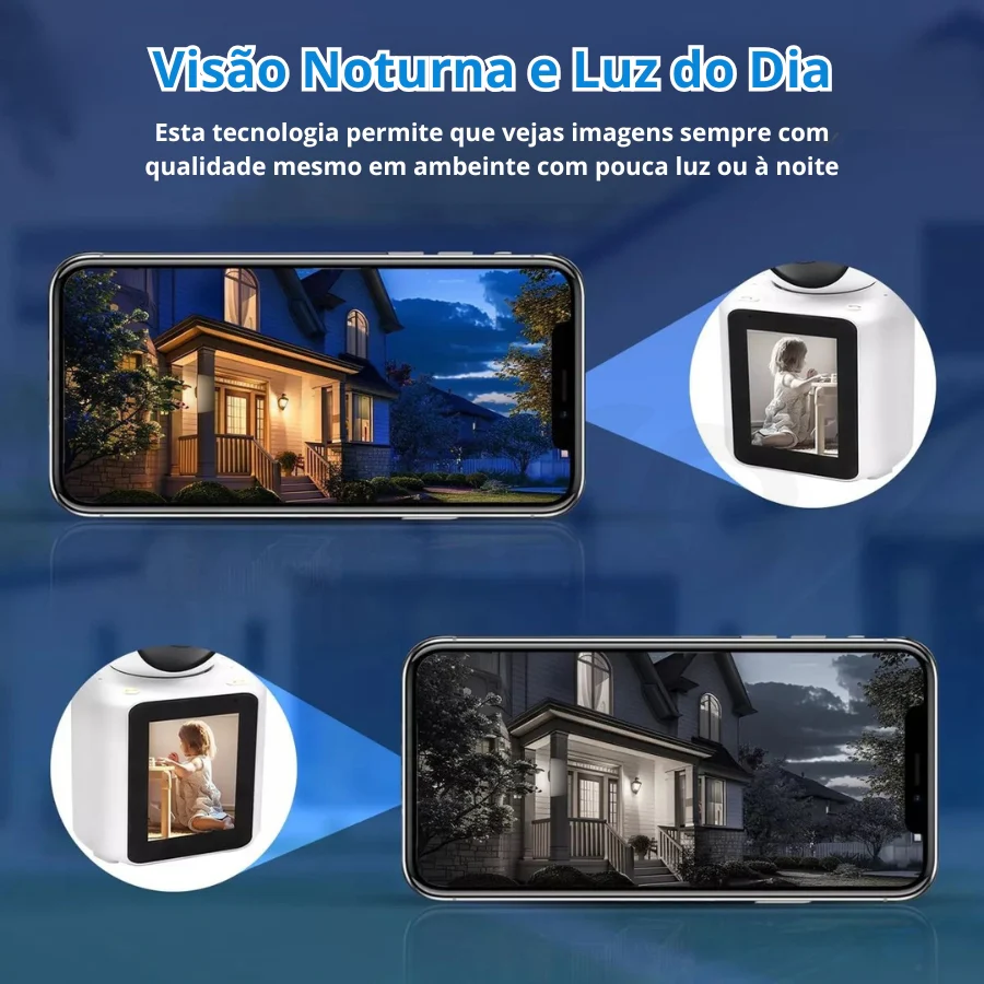 Com deteção de movimento, visão noturna e alta resolução, esta câmara é a escolha ideal para quem procura proteção e praticidade num só dispositivo! Vigie e mantenha seguro qualquer divisão da casa ou escritório quando não está ninguém. Ideal para ver e falar com as crianças, quando estão a brincar.