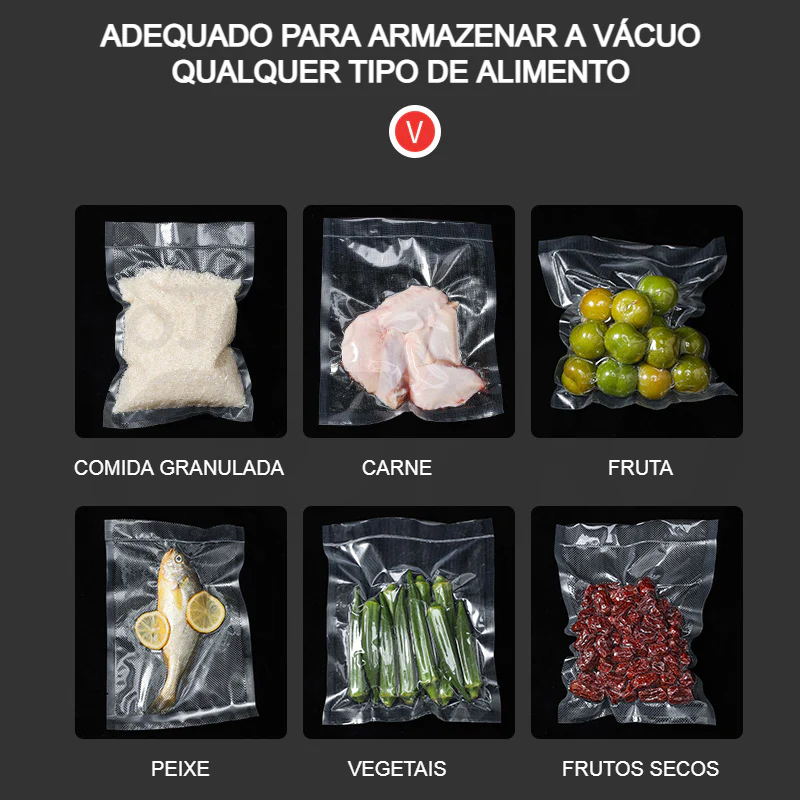 O sistema de vácuo, permite que retire o ar de dentro do saco e garante uma maior conservação dos alimentos quando congelados.