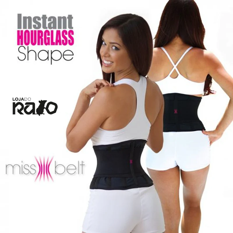 O modelador de cintura Miss Belt proporciona uma cintura instantaneamente mais fina e fornece-lhe aquele formato de "ampulheta" no momento em que é colocado.