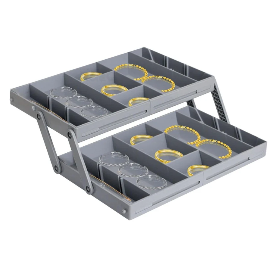 Ideal para arrumar acessórios, materiais ou cosméticos, este organizador adapta-se a qualquer gaveta, mantendo tudo no seu devido lugar. O seu design dobrável permite duplicar o espaços de armazenamento das gavetas.